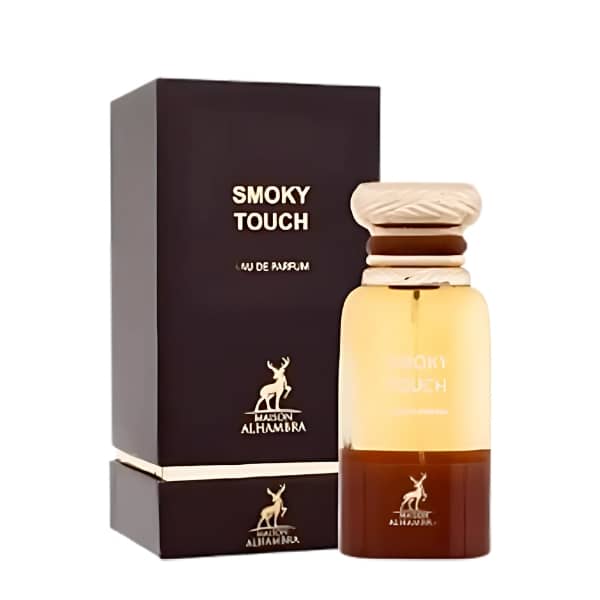 نوشتهی “Smoky Touch” روی جعبه به رنگ طلایی یا نقرهای